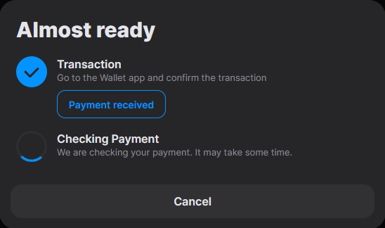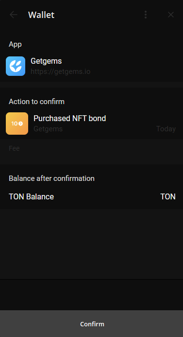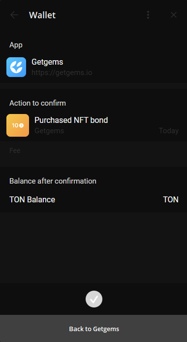 Quyida siz GetGems ilovasida o'tkazmani tasdiqlash misolini ko'rishingiz mumkin.
