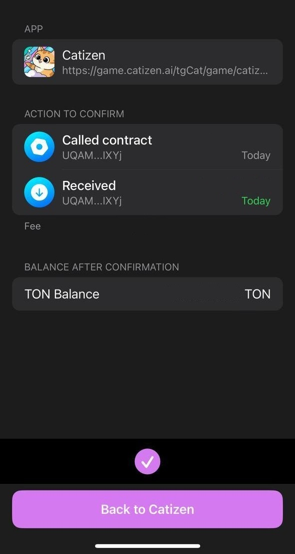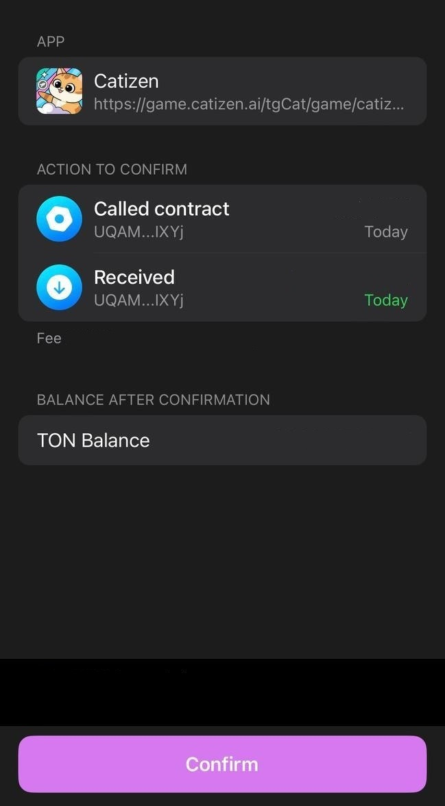 Quyida siz Catizen ilovasida o'tkazmani tasdiqlash misolini ko'rishingiz mumkin.