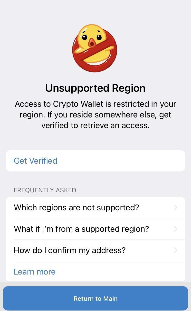 - Mintaqaviy cheklov. Kripto Hamyonidan faqat mintaqa to'g'ri ko'rsatilgan va sizning haqiqiy joylashuvingizga mos keladigan telefon raqami ishlatilgan taqdirdagina foydalanish mumkin.