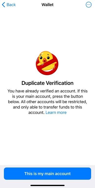 Agar bir nechta Telegram akkauntingiz bo'lsa ham, Kripto Hamyonda faqat bitta akkauntingiz bo'lishi mumkin.