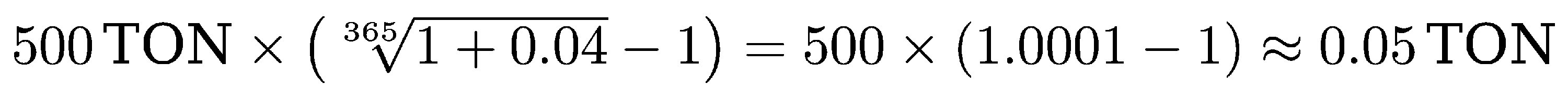 Yakuniy APY 8% emas, 7.57%'ni tashkil qiladi (chunki ikkinchi mukofot to'lovi allaqachon oshirilgan balansga o'tadi). Murakkablik tufayli yakuniy natija har doim oddiy yig'indidan katta bo'ladi. Natijada, yakuniy APY aniq 8% bo'lishi uchun joriy kun uchun mukofotlar APY 8% dan past bo'lishi mumkin.