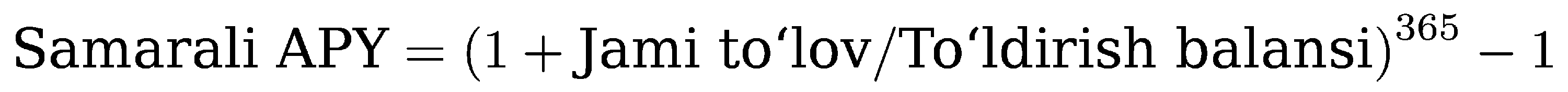 Amaldagi samarali APY'ni hisoblash formulasi: